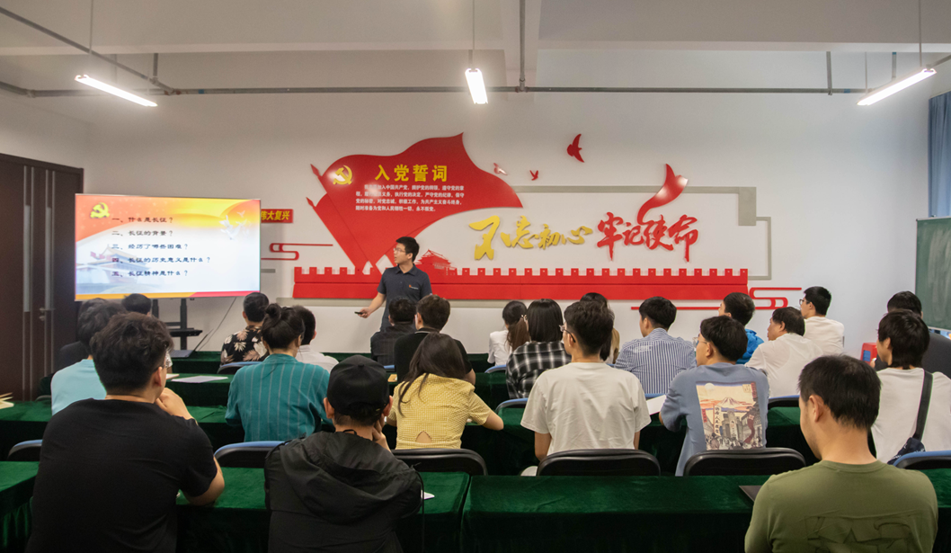 本次活动分三个部分,第一部分由辐射防护与环境工程教研室党支部赵强、李新鹏两位老师以“红船精神”和“长征精神”为主题,为全体与会党员讲述党课;第二部分开展 “忆党史——知识竞赛问答”,通过支部成员接力回答的形式,加深了同志们对“四有好老师”、“四史”、“四个自信”、“三会一课”等党史、常识和党的规章制度的了解;第三部分由刘芳副院长带领全体与会党员重温入党誓词,对党旗庄严宣誓。