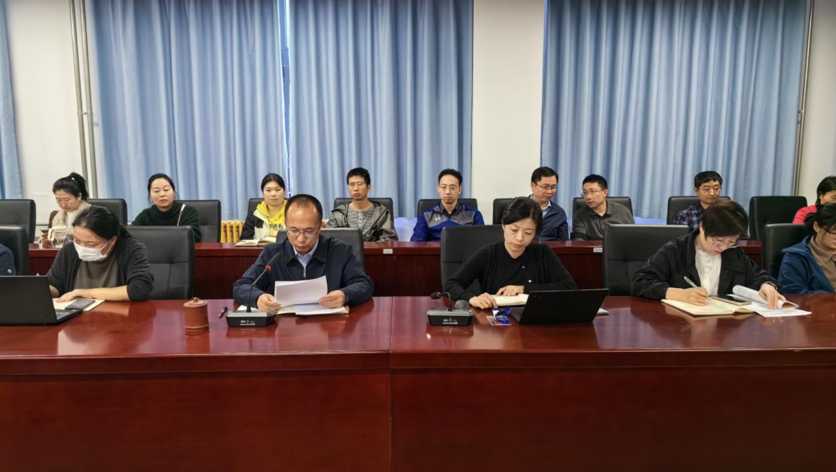 会议最后,李林对近期师德师风工作进行再部署,提出三点工作要求:一是各教研室要组织教师集中深入再学习,深学细悟,确保全体教师明确岗位准则,增强防范意识,坚守师德师风底线;二是各教研室要组织教师开展师德师风的自查与排查工作,重点排查师生关系突出问题,防患于未然,确保构建和谐师生关系,营造良好育人环境;三是全体教师大力弘扬践行教育家精神,关心关爱学生,对学生的学业和就业给予充分指导,帮助学生实现个人成长和职业发展。