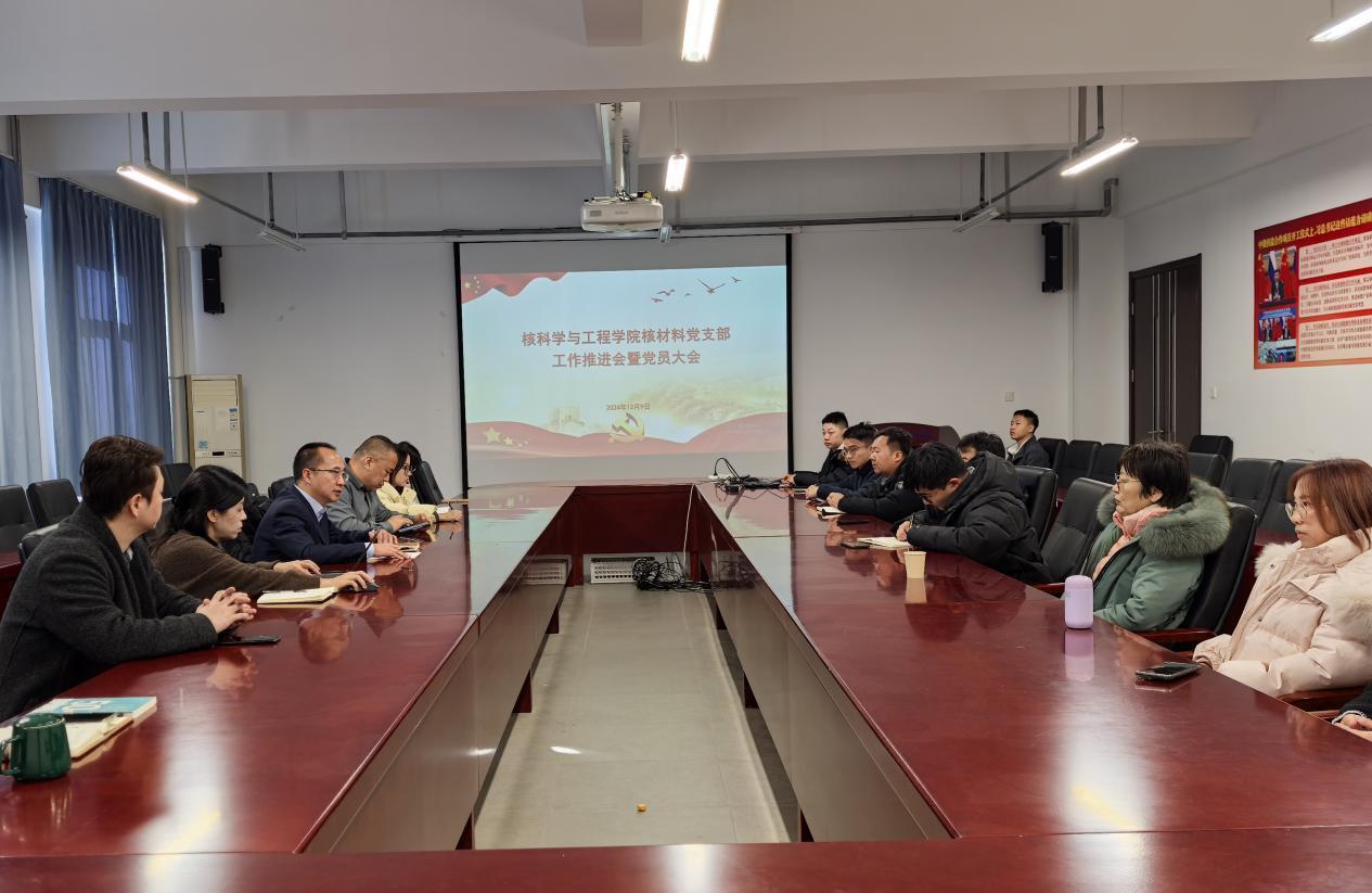 12月9日,糖心视频 召开科研团队型师生党支部——核材料党支部工作推进会。学院党委书记李林、院长刘洋、副书记赵珥希,核材料党支部书记佟振峰,核工程第二教研室党支部书记郝祖龙等出席会议,核材料党支部全体师生党员参加会议。会议由李林主持。