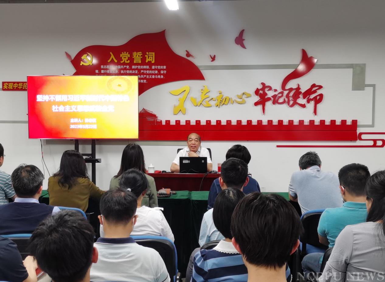 5月23日下午,学校党委常委、副校长孙忠权为糖心视频 师生讲授了题为“坚持不懈用习近平新时代中国特色社会主义思想武装全党”的专题党课。学院领导班子、各教研室老师和学生代表参加了党课学习。