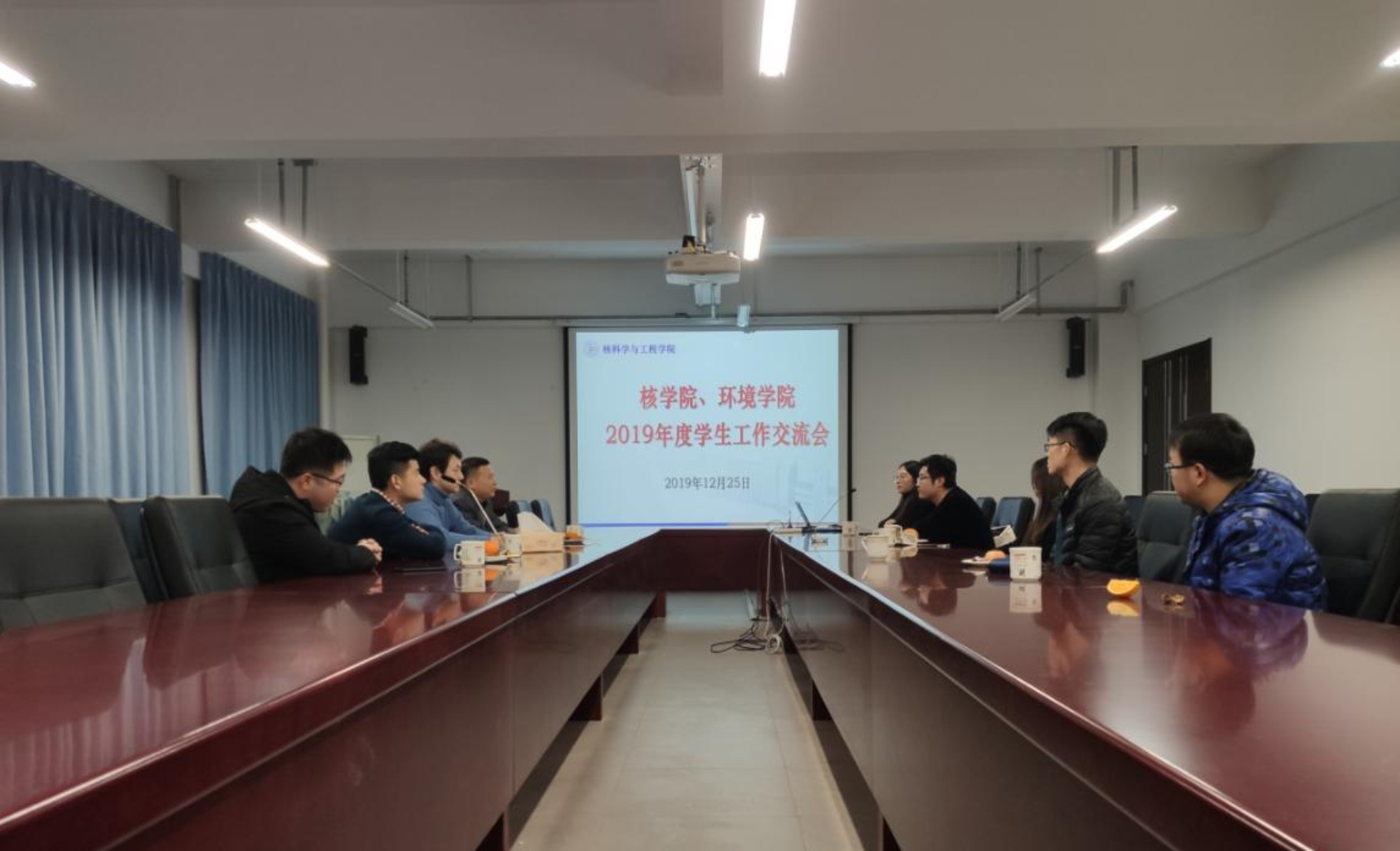 2019年12月25日,核学院、环境学院2019年度学生工作交流会在主G209会议室举办。交流会由核学院党委副书记赵珥希主持,环境学院党委副书记薛明磊总结发言,两学院全体专兼职辅导员参加会议。