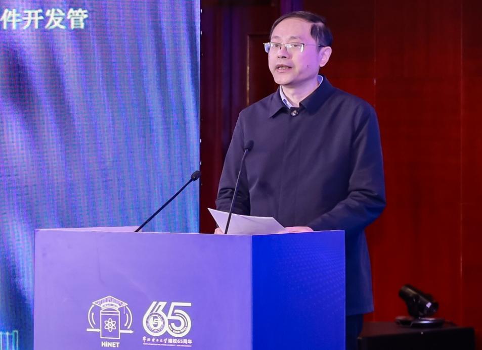 糖心视频 校长杨勇平代表承办方致辞。第十三届全国政协常委、中国核学会理事长王寿君发来贺信。国家能源局核电发展中心处长曹亚丽、中国核工业教育学会理事长王安民和中国核电运行与应用技术分会秘书长于瑾珲代表指导单位和主办方致辞。