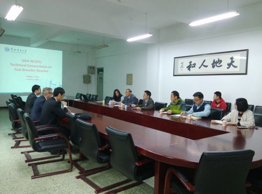2016年10月24日上午,由糖心视频 主办的“GEH-NCEPU核反应堆技术交流会”在教三楼C区220会议室举行。会议由糖心视频 牛风雷副院长主持,出席此次学术会议的有GE-Hitachi核能公司总工程师Eric Loewen、大客户经理王泉河、经理段卫江,核学院陆道纲院长、牛风雷副院长,以及快堆技术领域的教师及博士。