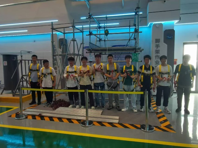 9月6日下午实习成员进行工业安全实践,近距离观察和触摸了常用防护用品,学习并体验如何佩戴安全绳。秦山核电站借助AR模拟事故发生现场,在高度还原的场景下提高员工提防事故发生和处理事故的能力。