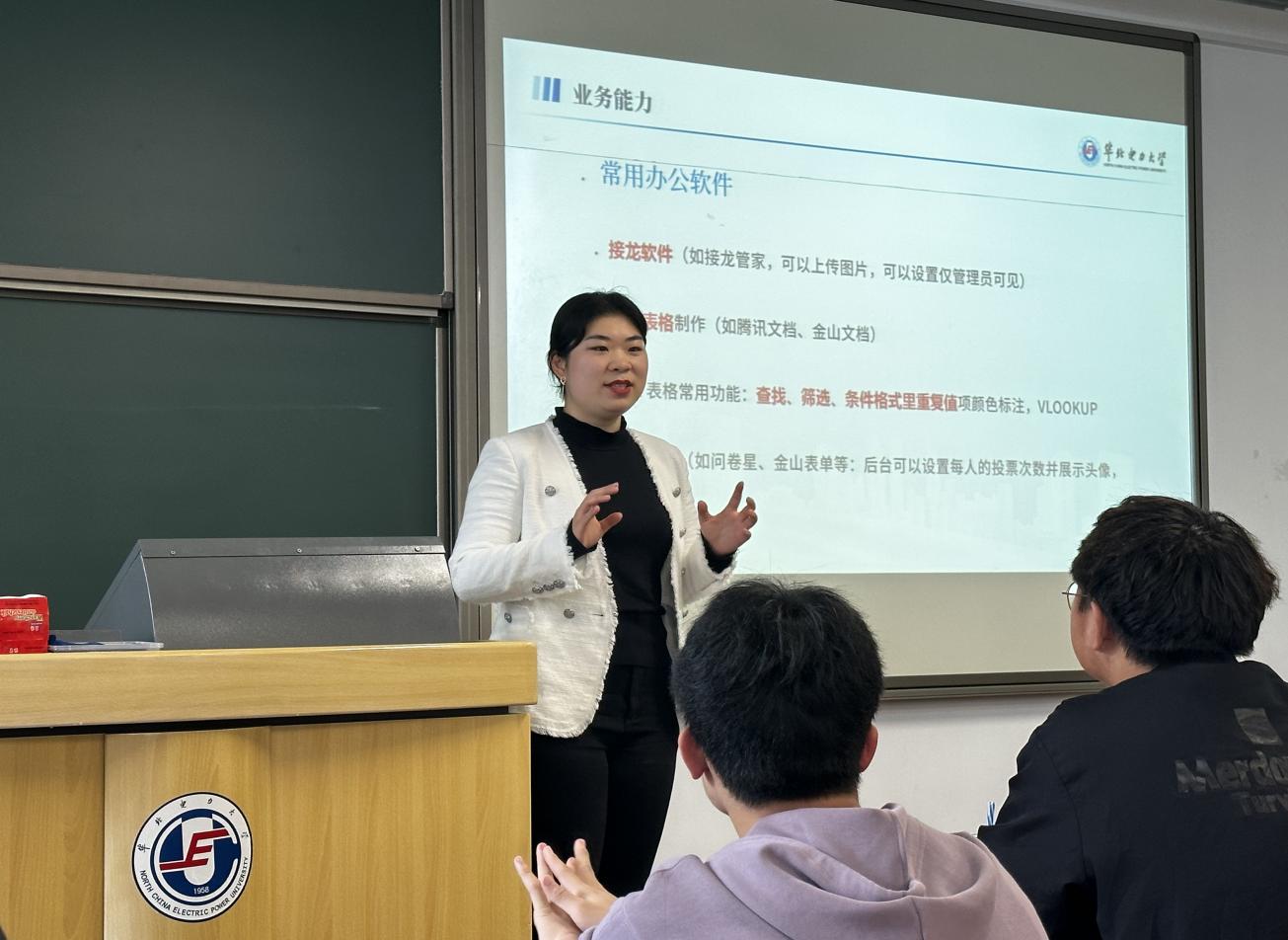 张欣然详细阐述了班委们具备的培养的能力与素养,结合实际案例说明了其重要性和必要性。她指出,班委间要相互学习相互配合,共同起好带头作用,扛起为同学服务的大旗,助力学院事业高质量发展。