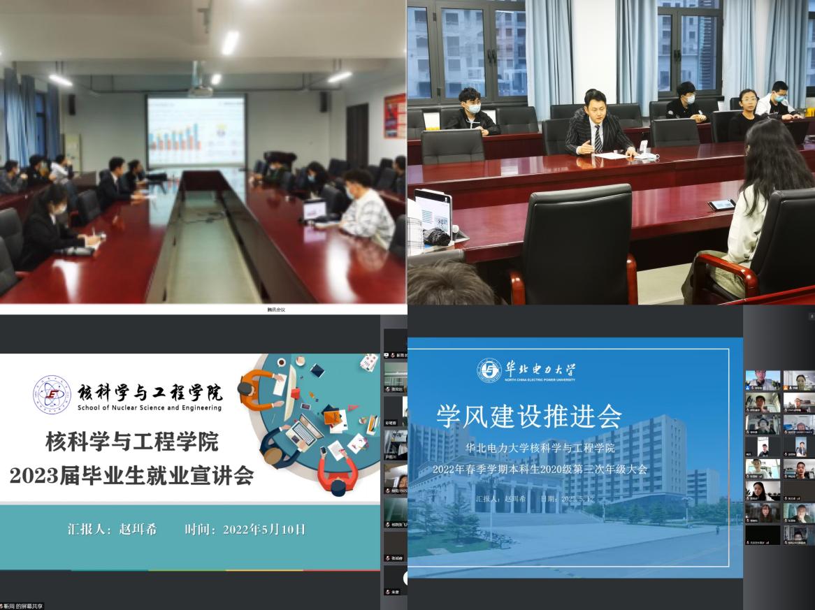 5月9日—14日,学院党委副书记赵珥希牵头召开了各年级学风建设推进会与就业宣讲会,通过梳理2022届就业情况及往届就业数据,充分调动学生当前防疫形势下学习的目标性、主动性和创造性,动员2019级学生努力练好内功,提升自己的专业水平,把握考研大势,提高考研成功率;鼓励2020级学生在保证学业的前提下全面发展、全面提高,让自己拥有更多选择;引导2021级学生明确奋斗目标,志存高远、脚踏实地,从认真学好每门课程开始,利用四年时间实现自己新的飞跃。